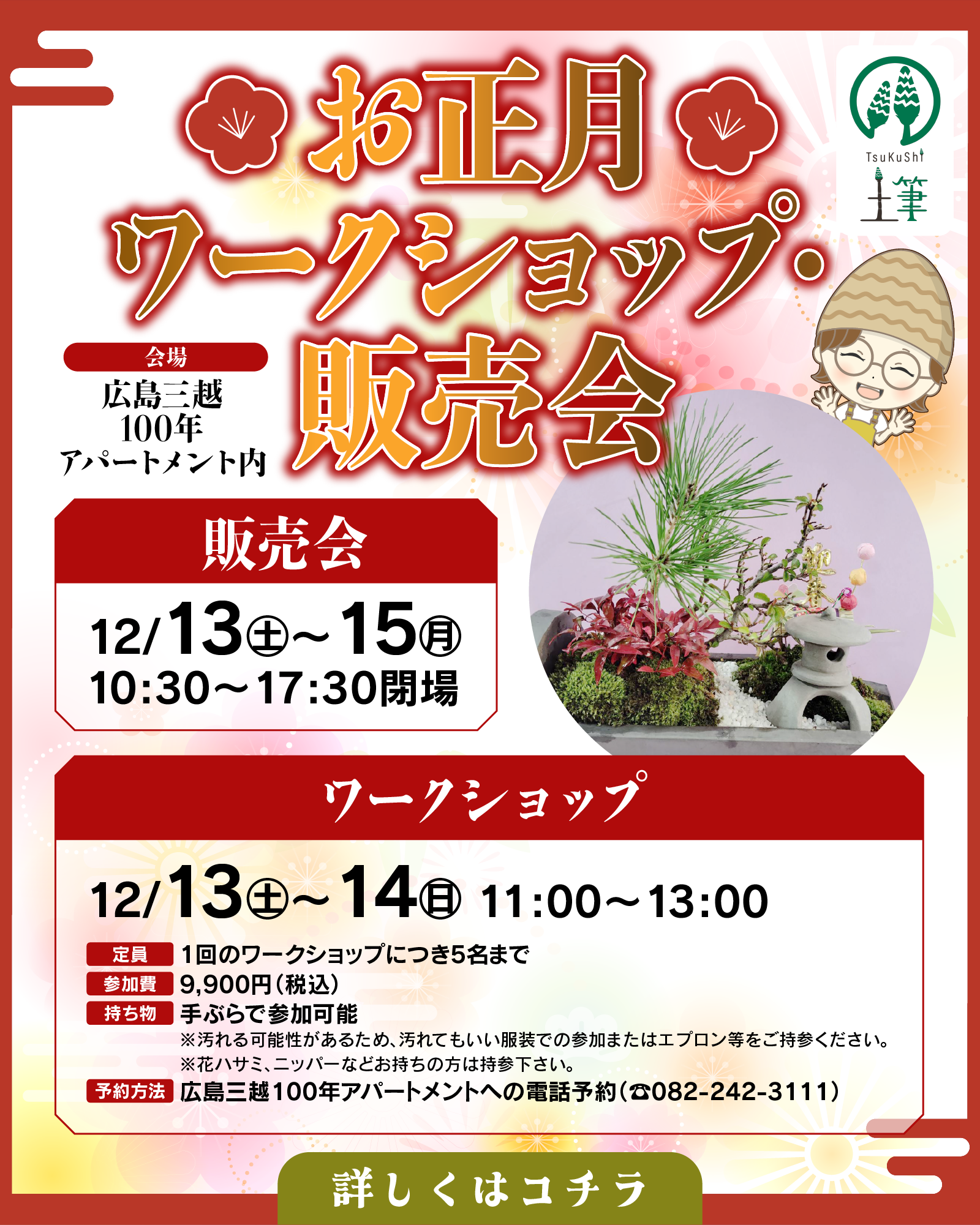 予約方法:広島三越100年アパートメントへの電話予約(電話番号:082-242-3111)